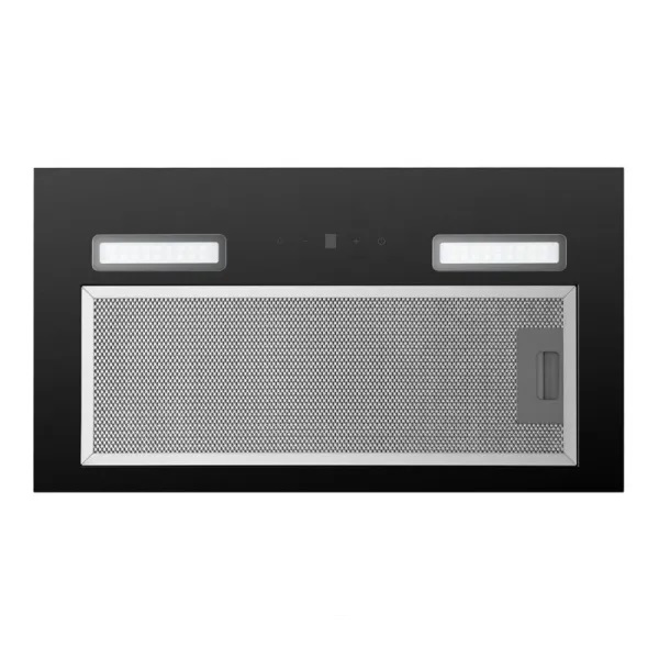 Midea MH52BI3250GB Built in Canopy Hood in BlackGlass finish. Features 3 speeds with maximum extraction 630 m³/h, Hand Wave touch control, 2 Led Lights of 1.5W and alouminium grease filters dishwasher safe.