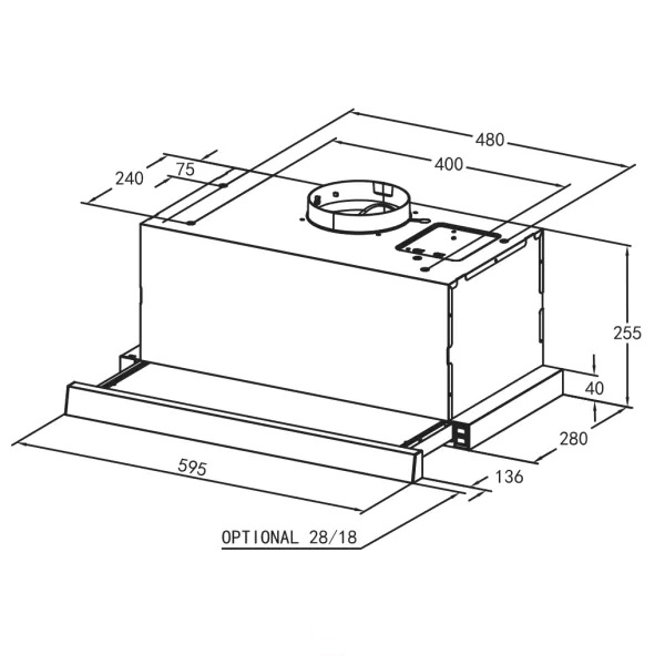 | Dimensions (LxWxH) | 280 × 595 × 255 mm |