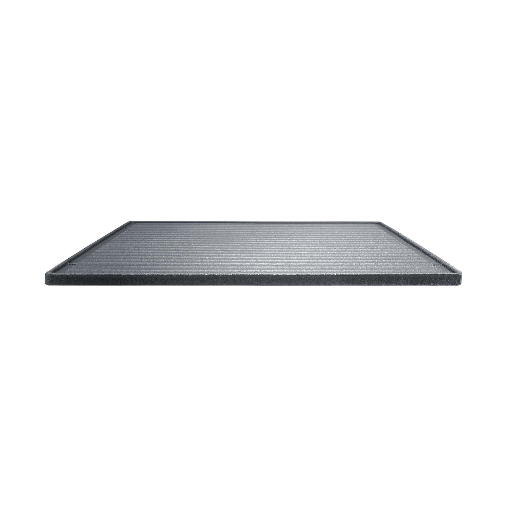 Nothing will burn when you grill on the enamelled cast steel grill plate. Thanks to the efficient heating system, the grill plate is at operating temperature in just 10 minutes. The special feature: the plate is reversible! One side has a grill pattern, while the other side is smooth. This is perfect for fish, for example.