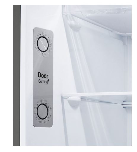 LG Door Cooling ensures that the interior of your LG fridge is quickly cool again after opening the door. Door Cooling creates a cold air flow that cools the fridge faster after opening the door. This cold air stream is blown at the front of the fridge from top to bottom and across the entire width. The door compartments are also cooled during this process. Thanks to the fixed temperature, your food stays fresh longer and the fridge consumes less energy.
