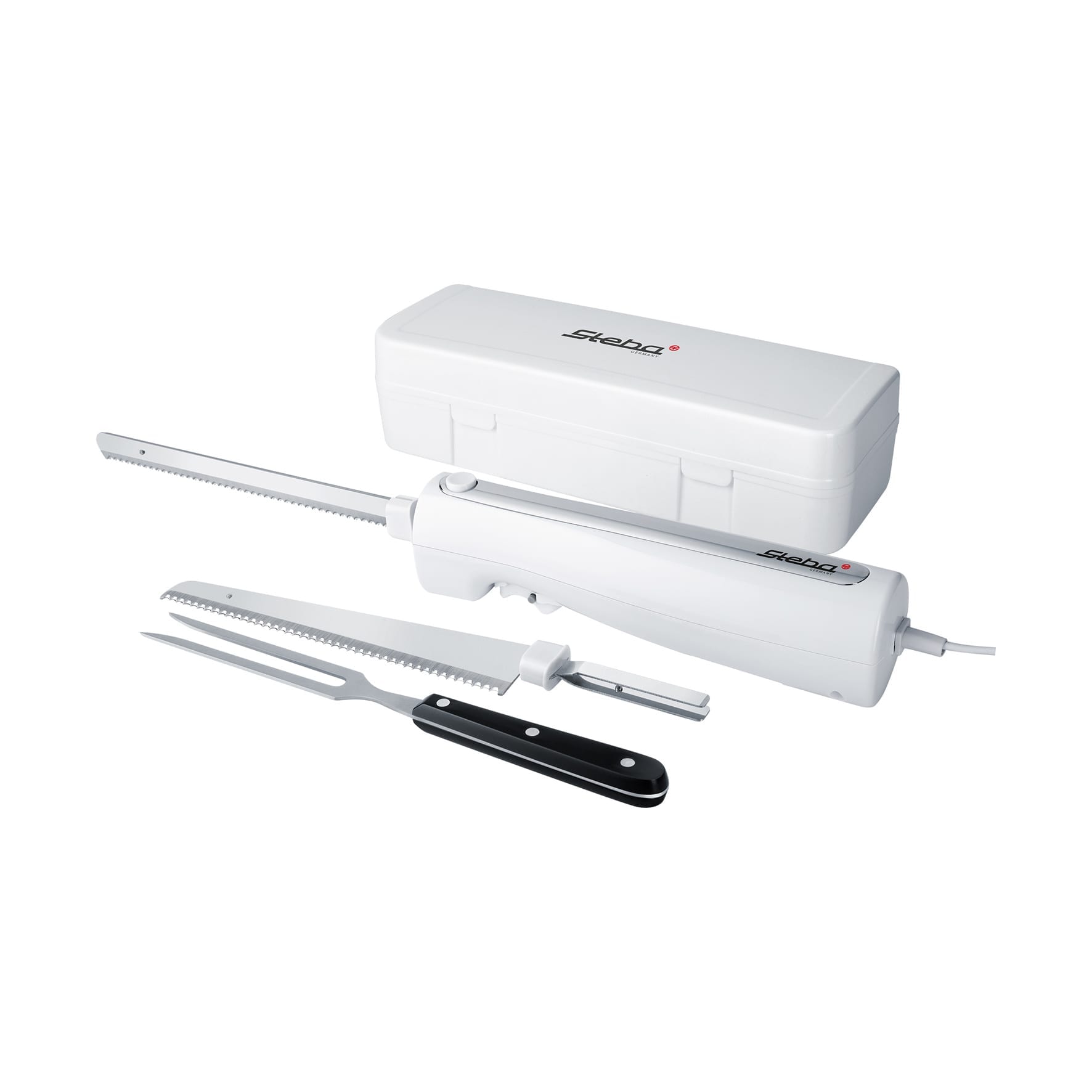 With the powerful EM 3 electric knife set from Steba, every cut is perfect. The easily replaceable stainless steel blade with robust serrated edge glides optimally through every roast. With the bread knife included in the scope of delivery, even bread can be cut easily. With the stainless steel meat fork, you always have the roast under control and can serve it right after the work is done. The ergonomically shaped handle of the EM 3 makes handling and operating comfort perfect.