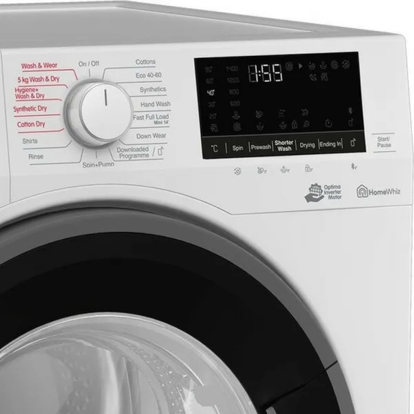 Blomberg BWD384W3 washer dryer, dries and washes efficiently up to 5 kg in a cycle and also reduces wrinkles. Features Optima Inverter Motor for lower noise level than standard motors, a specially designed Hygiene cycle to remove allergens and bacteria from your laundry, wash and dry cycle in just 60' and Fast+ function, to reduce the washing time.