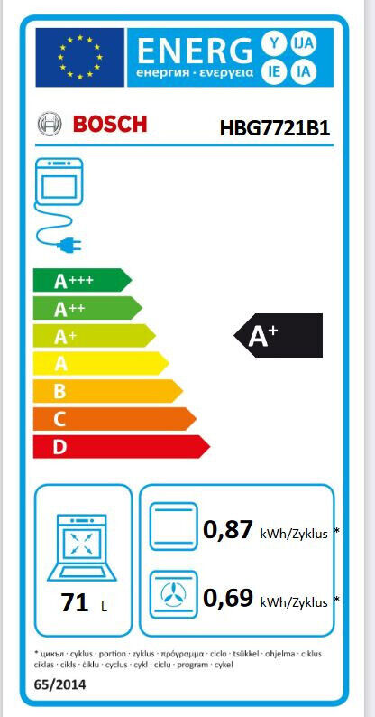 | Energy consumption per cycle (fan-forced convection mode) | 0.69 kWh/cycle |