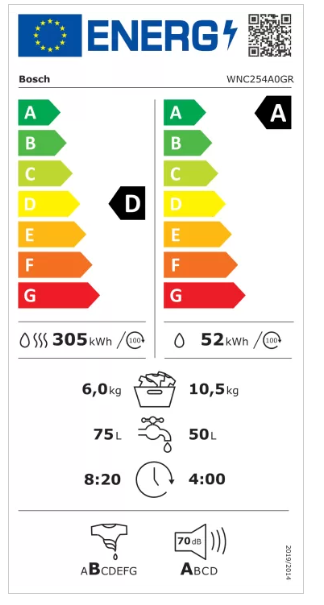 Bosch WNC254A0GR Washer Dryer, with a maximum washing capacity of 10.5Kg and 6Kg drying capacity with Hybrid FlexAir to save energy with perfect results in both washing and drying. It features quick wash&dry option for 6 Kg, AutoDry system that gently dries your clothes and and excellent hygiene even for the most sensitive clothes thanks to the HygieneCare function. In addition, thanks to HomeConnect, you are given the possibility for remote access and operation of the appliance via smartphone or tablet!