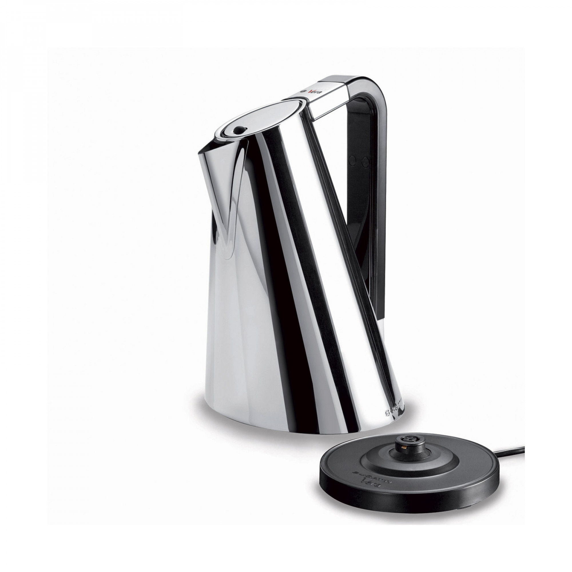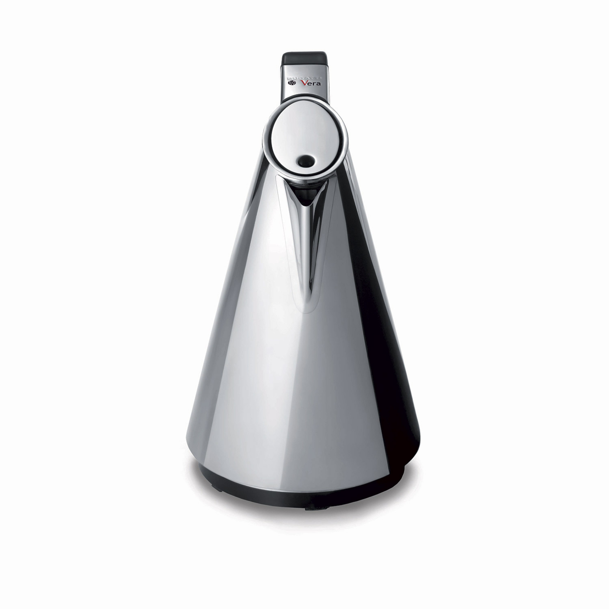 Vera Easy is pure design. The elegant and slender shape makes it a perfect object to be inserted into domestic spaces. The volume combines cone and ellipse, giving dynamism and personality. Simple to use: the lid opens through a light touch, the body is 360° movable, on the handle there is a window that allows to check the water level. Made of 18/10 stainless steel it is provided with removable anti-limestone filter.