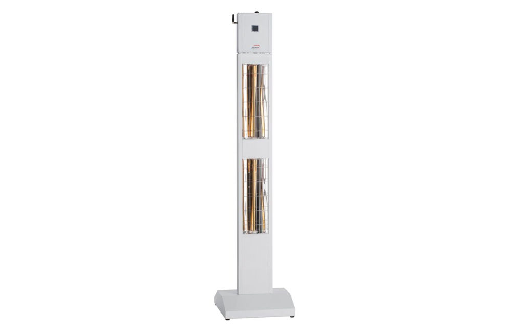 The elegant standing heater with Bluetooth interface is equipped with two emitters, 1500 watt each. The infrared short-wave (IR-A) heater enables smart and wireless control via smartphone or tablet (iOS or Android) with the free BURDA APP. An infrared remote-control, included in the set, and a switch function on the heater allow as well for manual operation. The heater with splashguard IP24 delivers maximum warmth in all protected outdoor areas and is equipped with LOW GLARE tubes with reduced red-light areas. Please note: Up from 2000W we recommend using 16A slow blow fuses (C16).