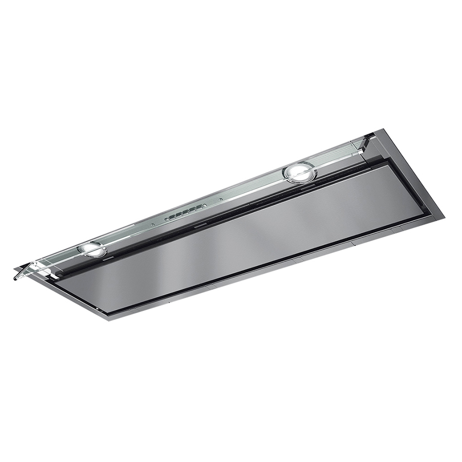 The Perimeter Suction is an evolution in the design of kitchen hoods whereby air is drawn through the grooves around the perimeter panel, creating an air curtain effect. This offers improved suction performance, especially at the edges compared to traditional models, a more elegant and modern look by hiding the filter, easy cleaning and lower noise levels.