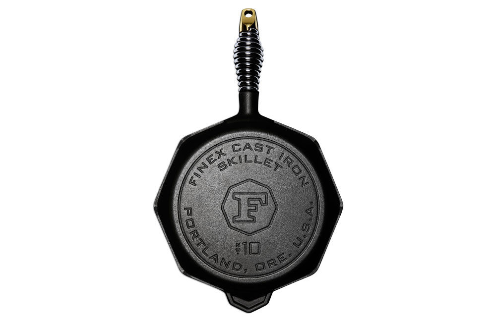 Cast iron pans are beloved for their ability to retain extremely high levels of heat, resulting in perfectly browned steaks, cornbread, pies, and so much more. They are suitable for all hobs including induction, in the oven, and on the barbecue. What makes a Finex skillet so unique is its coiled stainless steel handle; it stays much, much cooler than the rest of the pan, making it significantly easier to manoeuvre. The ultra-polished cooking surface is pre-seasoned with organic flaxseed oil making it ready for immediate use, and will resist sticking and rust. The octagonal design allows eight ways to get a bigger spatula in the pan and provides up to six different pouring spouts for liquids and sauces. The thicker casting lets a Finex skillet retain more heat than others and the base is smoother, so the journey to easy-release cooking is much faster. The lid makes it great for steaming foods or making sauces and other high-liquid foods