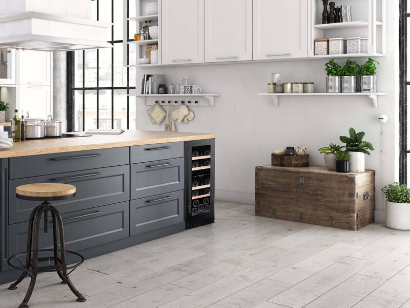 Thanks to its 2 temperature zones with independent adjustment, you can bring several types of wine to service temperature. The upper section is for whites and Champagne and can be set between 5-12°C and holds 7 bottles and the lower can be set between 12-20°C and holds 11 bottles.