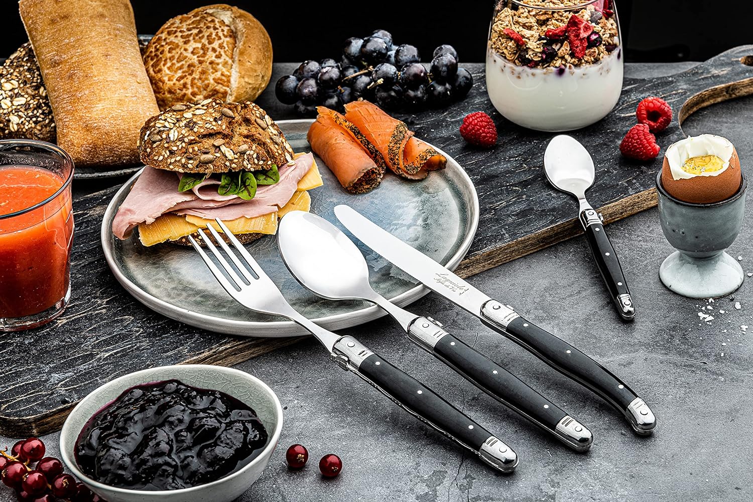 With the 6-piece fork set Black from the Premium Line of Laguiole Style de Vie you enjoy every meal to the fullest. The forks are made of Stainless Steel. The thickness of the forks are 1.8mm and are dishwasher safe. Each set comes in a handy wooden block. The 6-piece fork set from the Premium Line is also available in other colours and materials or complete your set with the matching steak knives.