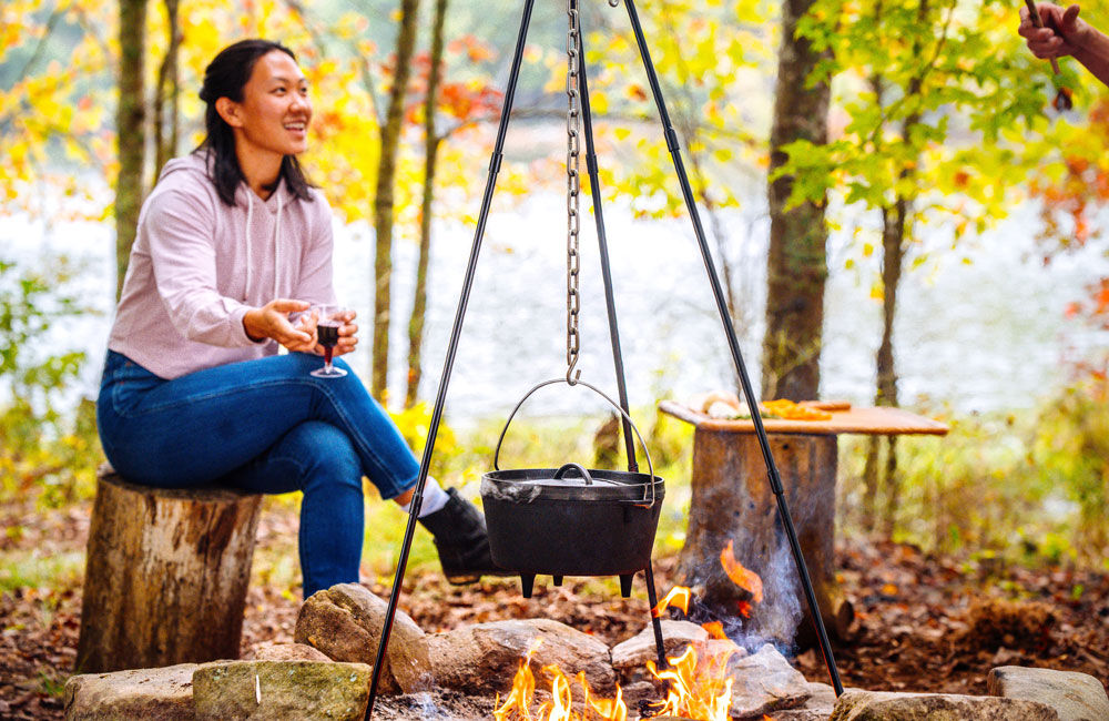 You never know where your outdoor adventures will take you. That's why you need the Adjustable Camp Tripod, so you can change the height as needed depending on where you are and what heat source you're using. Constructed from solid steel with a galvanized chain, the tripod is ideally suited for use with Lodge Camp Dutch Ovens for a secure hold while you enjoy the great outdoors. This adjustable size comes with a tote bag made of strong polyester and durable PVC backing.