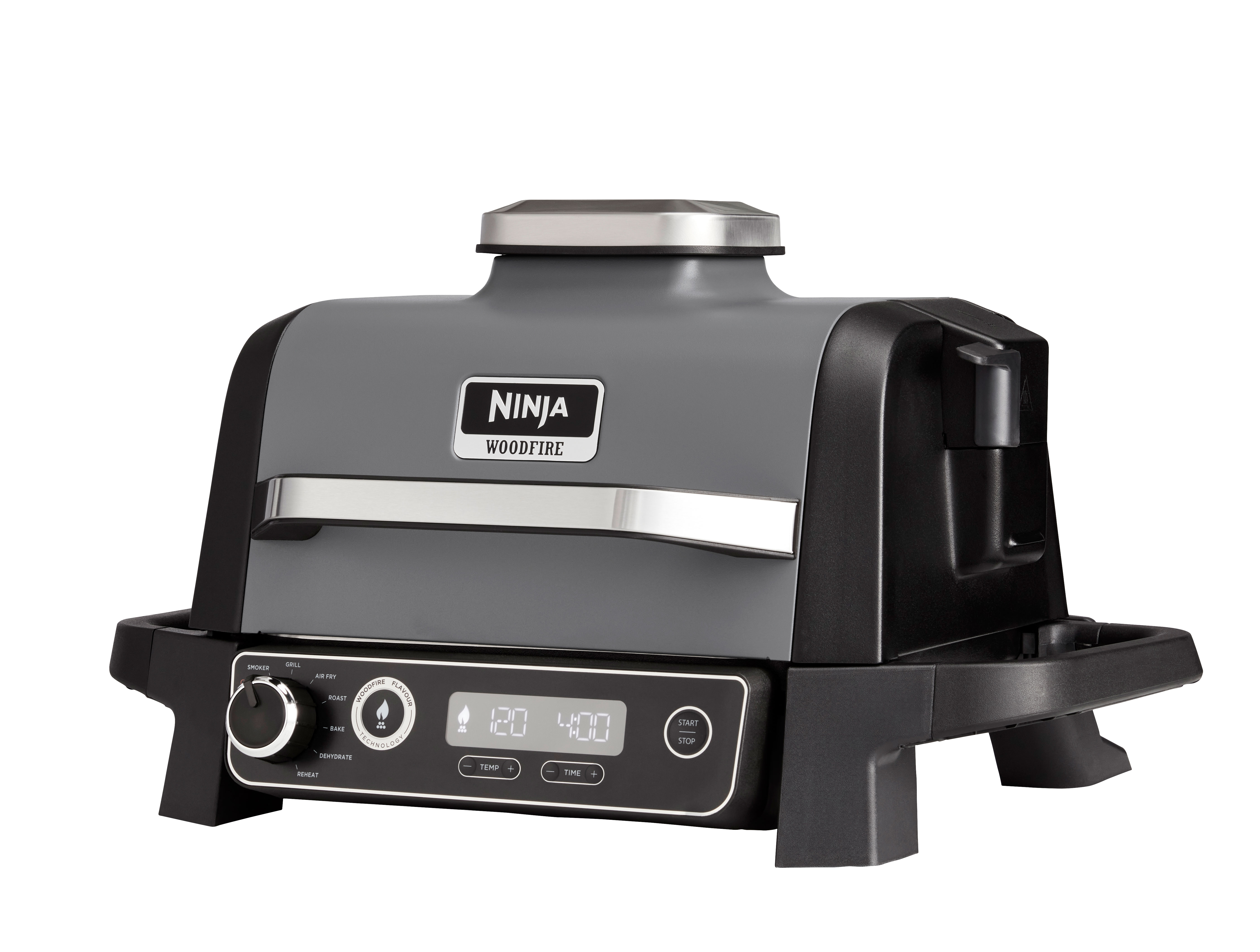 Take the kitchen outside:With this electric outdoor cooking system you hardly need any other device! The NInja Woodfire can grill, smoke, air fry, raost, bake, heat up and dry your food, so it has 7 different cooking functions:
