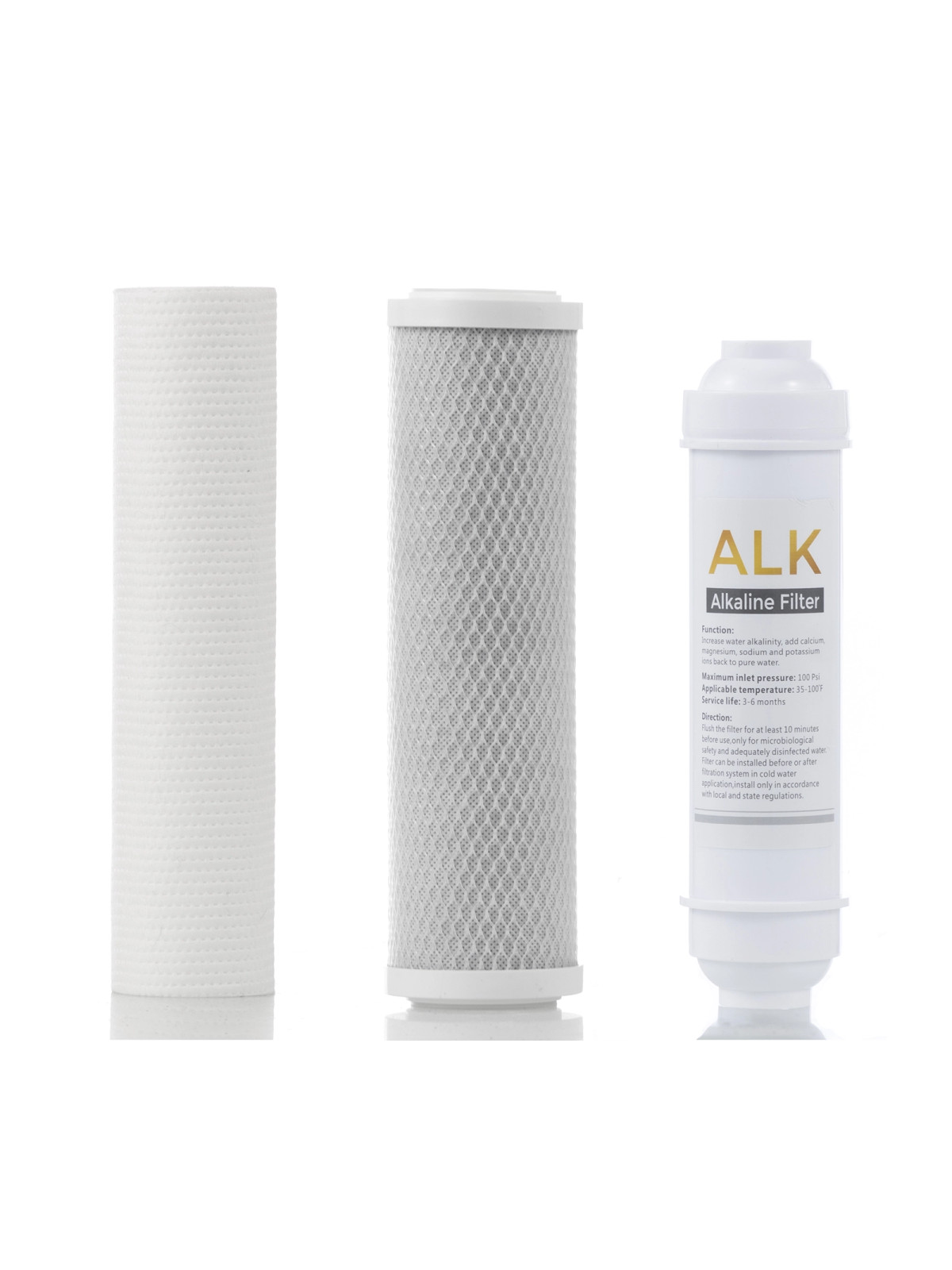 > PREFILTER + ACTIVATED CARBON – Blocks Sediment, Reduces Chlorine & Petrochemicals. Replace /12months