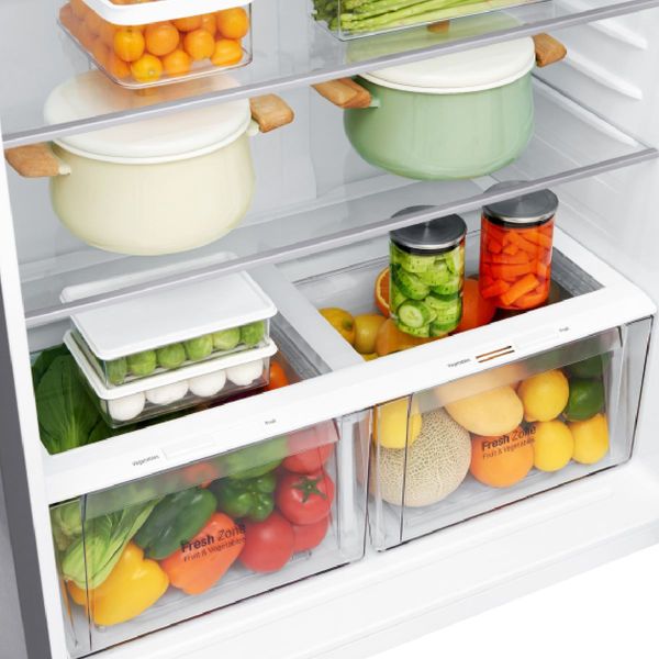 LG's linear inverter compressor helps preserve the appearance and taste of fresh food for longer by reducing temperature fluctuations.