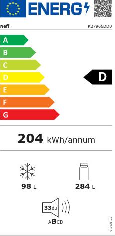 Neff KB7966DD0 Built in Fridge Freezer with No Frost technology, D energy class and total net capacity 382L. Features Eco Air Flow technology for uniform air circulation, constant temperature and fast cooling, Soft Close hinges for soft and quiet door closing, Led Interior Light, internal touch control Electronic Display for precise temperature control, open Door Alarm, Fresh Safe drawer for fruits and vegetables with humidity control and Reversible Doors.