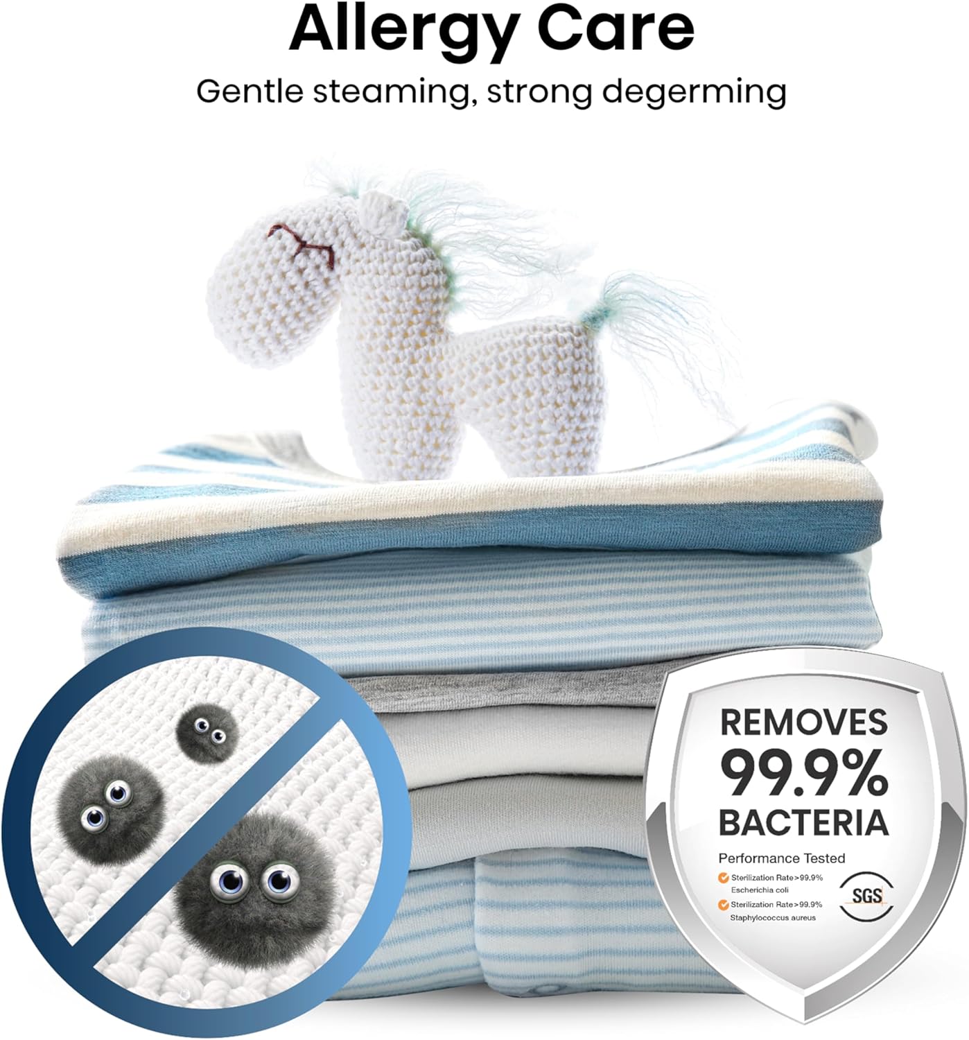 This washing machine take care of your health! Hygienic cleanliness is a must when one of the household members is allergic. The Allergy steam/Baby steam care technology releases steam from the bottom of the inner tub quickly and removes the allergen from clothes to ensure the washing items are allergen-free. Your loved ones' clothes have never been as sterile as they are now.
