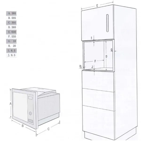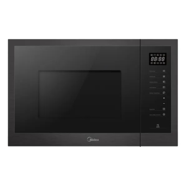 Midea TG925E3BK Built-In Microwave Oven in Dark Graphite color, 25L capacity with Grill function (1000 W). Features 2 heating functions, for defrosting, warming up and perfect preparation of your food, 5 power levels, side door opening, LED display with touch control, inner surface made of stainless steel, inner Light and 8 Preset Programs.
