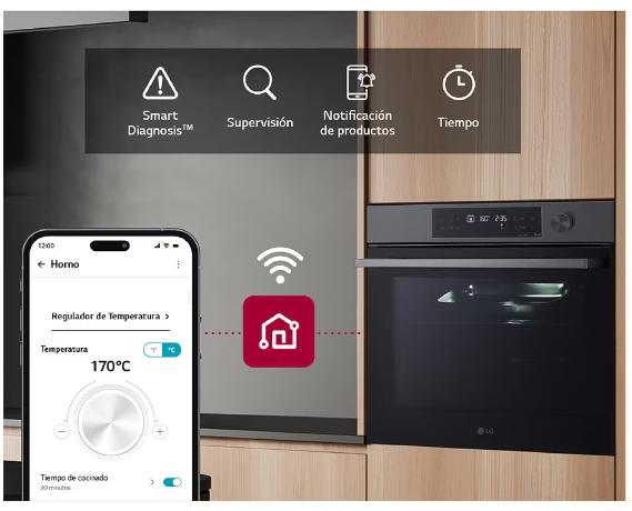 With LG ThinQ™, cooking is easier than ever! From simple functions like preheating the oven, setting the timer and monitoring the cooking progress, to more advanced features like diagnosing and solving problems based on your usage. You can do all of this directly from your mobile phone, without having to get up from the couch!