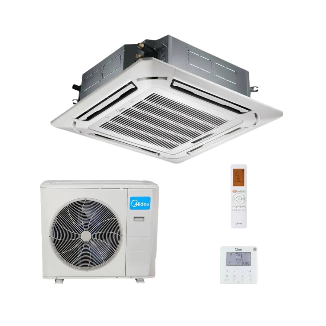 Midea Cassete type air conditioner, suitable for cooling or heating big areas such as shops, offices, etc. Features 360° Airflow for uniform air distribution and even temperature, choice between wired and wireless control, while the housing with anti-rust protection ensures maximum protection and performance of the unit. In addition, it has FollowMe function, SelfDiagnosis function, Coolant Leak Detection, Loover memory automatic restart and many other features and functions for ease of use.