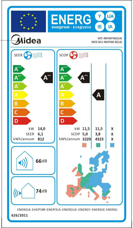 | Heating Energy Efficiency Class (Warmer season) | A++ |