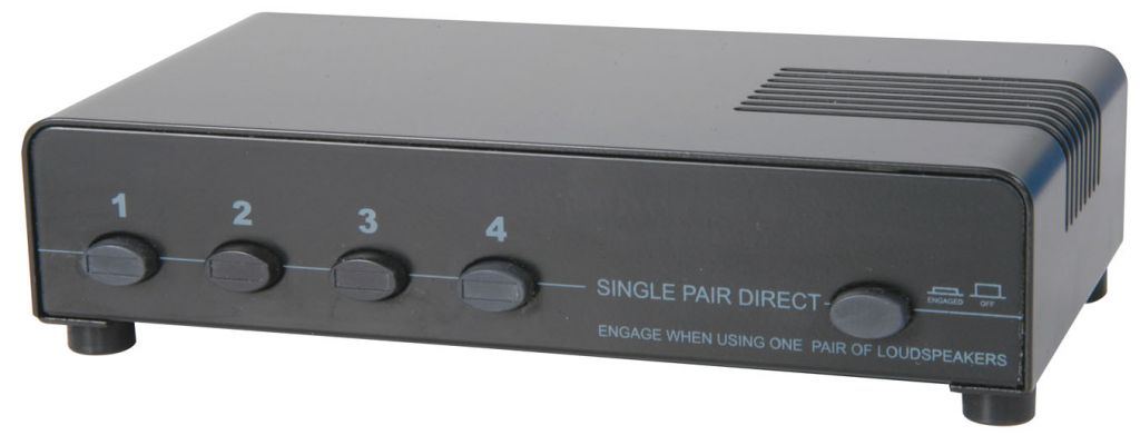 - Enables four pairs of speakers to be connected to a single stereo amplifier