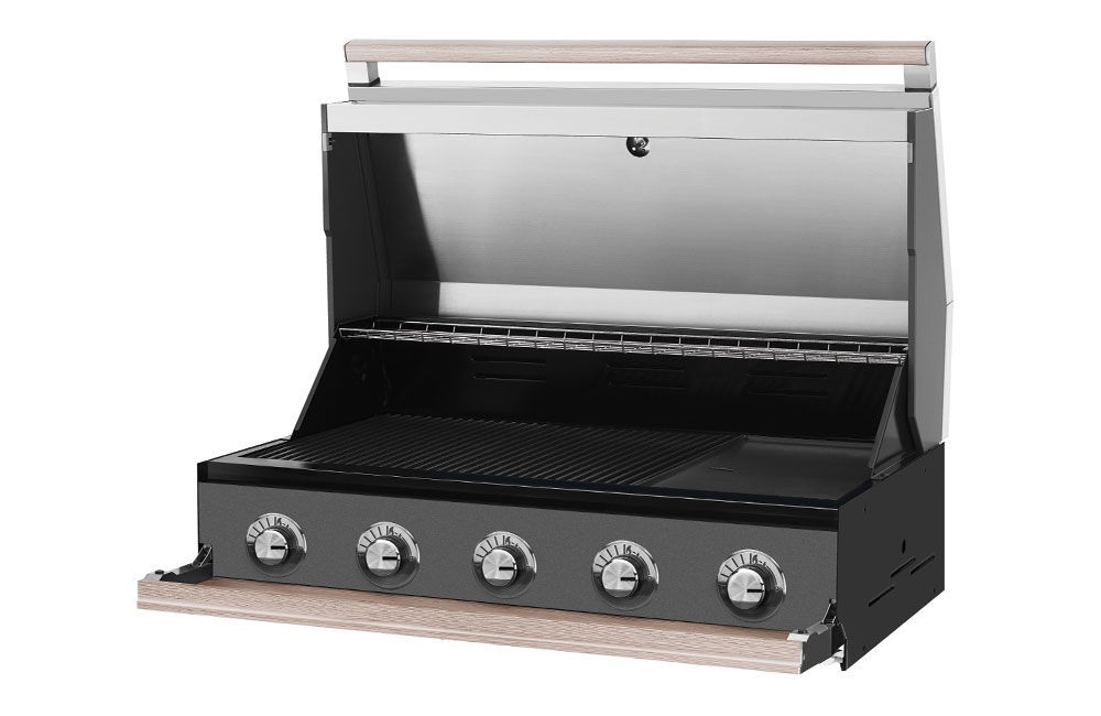 - A rollback hood that allows the BBQ to sit snugly against the wall