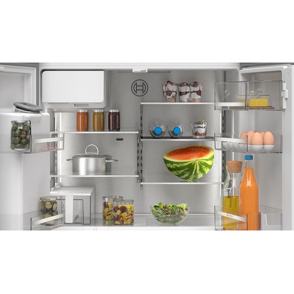 Uneven cooling in your fridge can greatly affect the flavour and longevity of your food. Thanks to the metal backwall with MultiAirflow, humidity and temperature is evenly distributed throughout the cooling area, from the door bins to the back corners, which helps your food retain its integrity for longer.