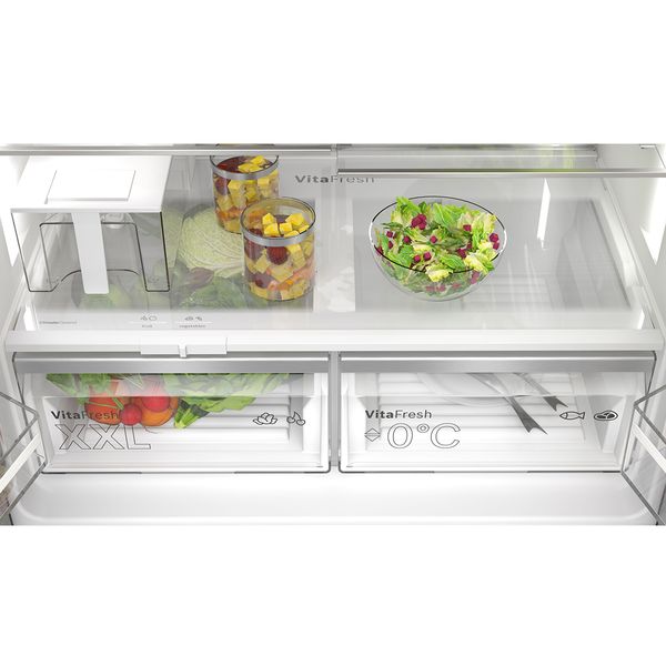VitaFresh XXL Pro 0°C offers the perfect storage environment for all your fresh food thanks to climate control and 0°C technology. Fish and meat stay fresh for longer at a temperature near 0°C. And your fruit and vegetables benefit from an optimised climate.