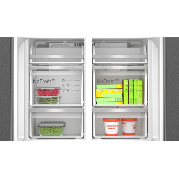 No Frost technology maintains a constant, optimal temperature in every corner, improving air circulation. It prevents the formation of ice on food, such as vegetables, so that they stay fresh for longer time. And it prevents the need to defrost your fridge.
