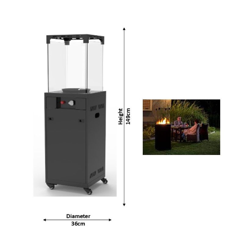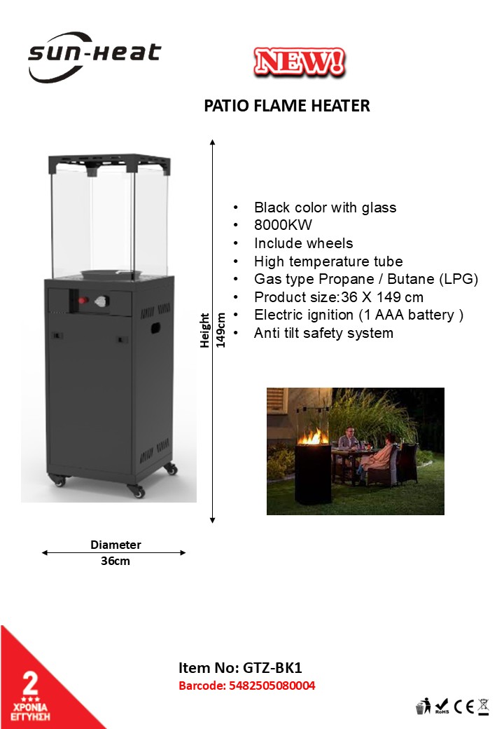 SUNHEAT Patio Heater Flame gas with glass GTZ-BK1