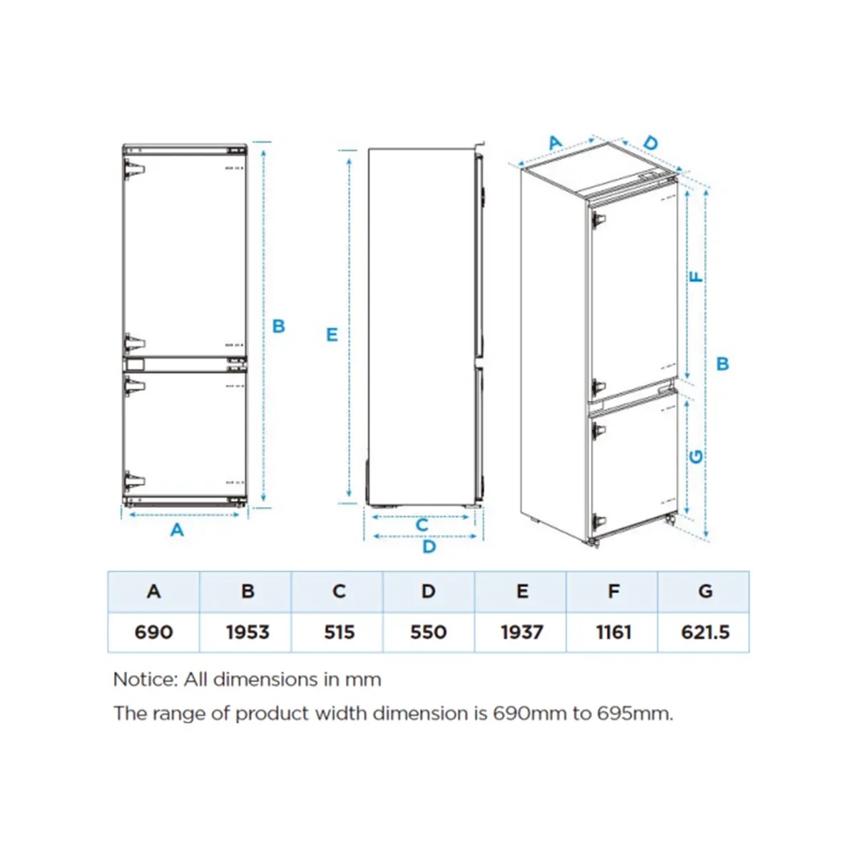 | Dimensions (LxWxH) | 550 × 690 × 1,953 mm |