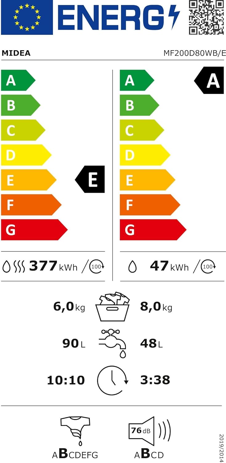 Upgrade your everyday laundry care with an appliance that perfectly balances speed, hygiene, and smart technology. With a capacity of 8 kg for washing and 6 kg for drying, an advanced BLDC Inverter motor for quiet and energy-efficient operation, and intelligent features such as steam, fast programs, and hygiene wash, it delivers outstanding results while protecting your fabrics. Designed for modern households seeking space, time, and energy savings, the Midea MF200D80WB/W-CY turns every wash cycle into an experience of comfort, reliability, and premium performance.