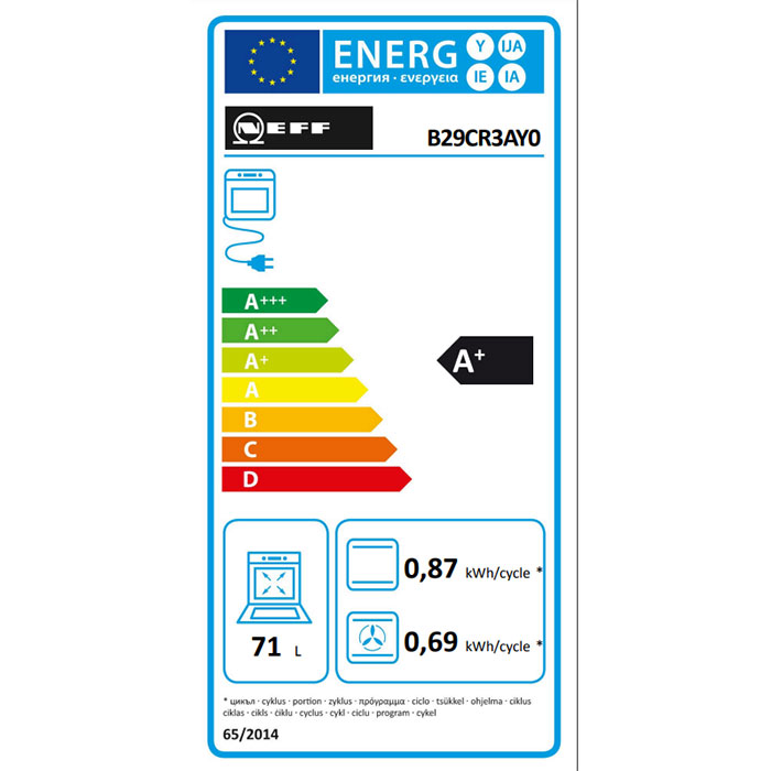 | Energy consumption per cycle (fan-forced convection mode) | 0.69 kWh/cycle |
