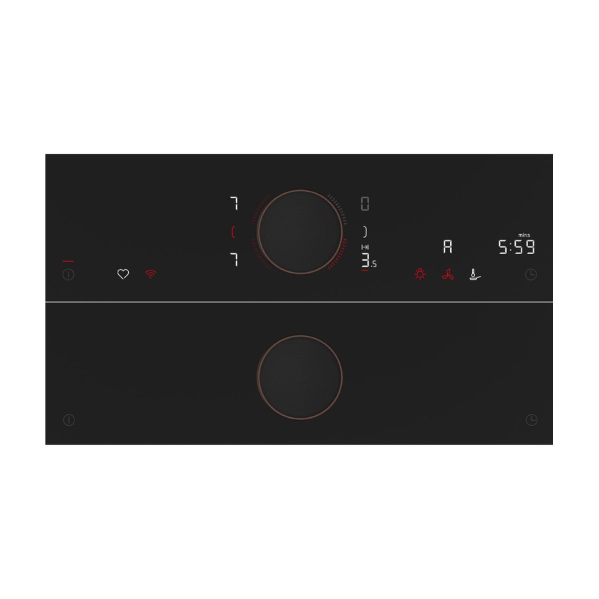 The magnetic, removable Twist Pad Flex® ensures precise and effortless control of your hob. Simply rotate the dial to activate your desired cooking zone and adjust the power level, while illuminated indicators clearly display the heating status. It can also be used to operate your oven or coffee machine, delivering a seamless and premium control experience across your kitchen appliances.