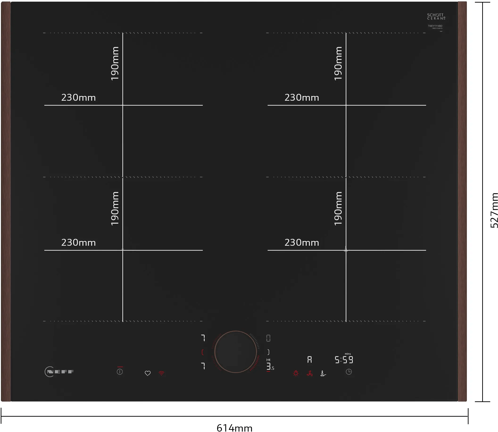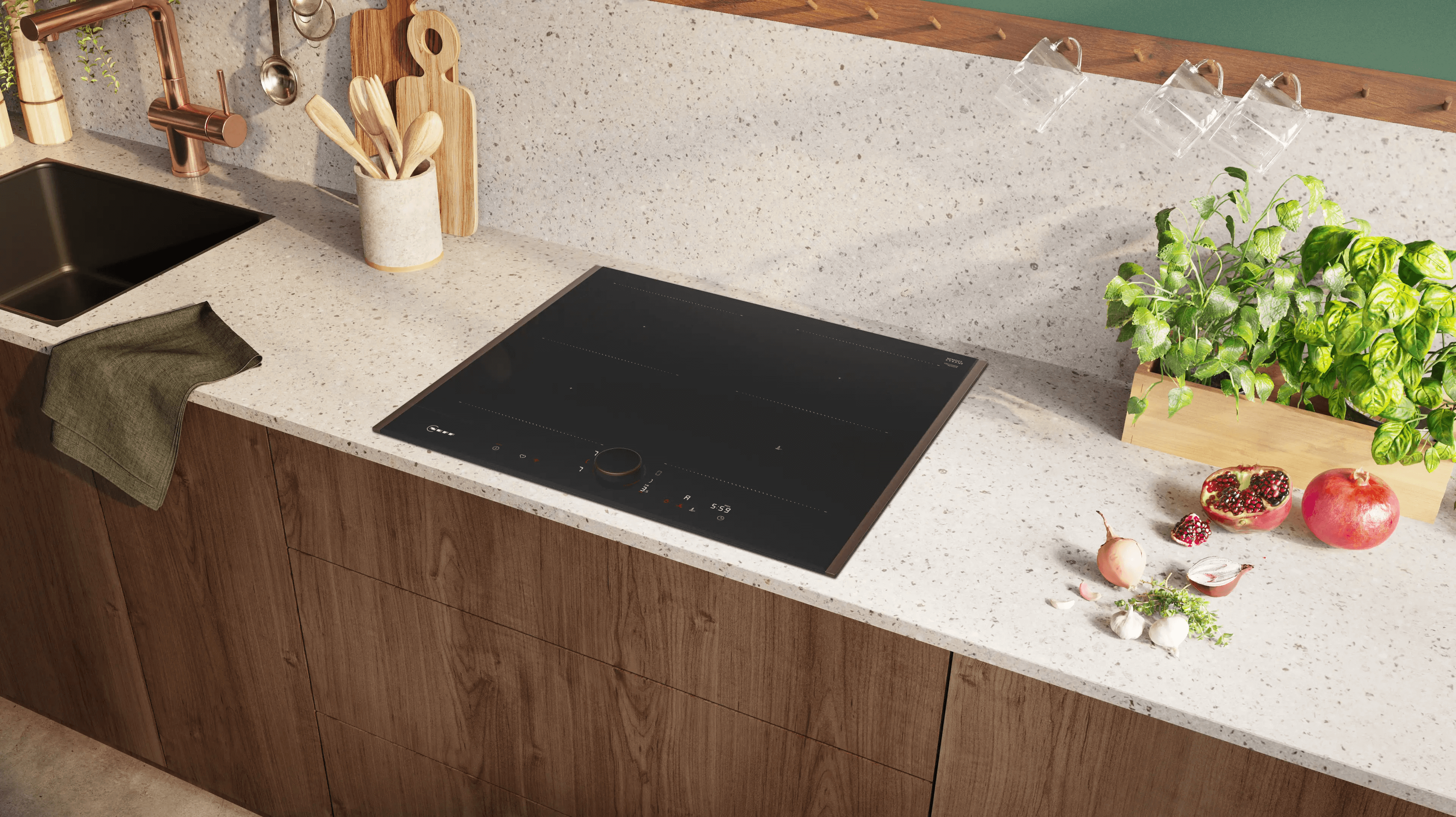 The Neff T66YYY4B0 induction hob combines a sophisticated Matt Black design with advanced precision technology, offering ultimate control and premium aesthetics in your kitchen. With a detachable magnetic Twist Pad Flex® switch, flexible Flex zones that automatically adapt to your pans and an 11-level frying sensor for perfect results without burning, it turns every cooking into a high-performance experience. Meanwhile, the Smart Hood Automatic function works with your extractor hood, while Home Connect offers remote control and smart features — for a kitchen that thinks with you.