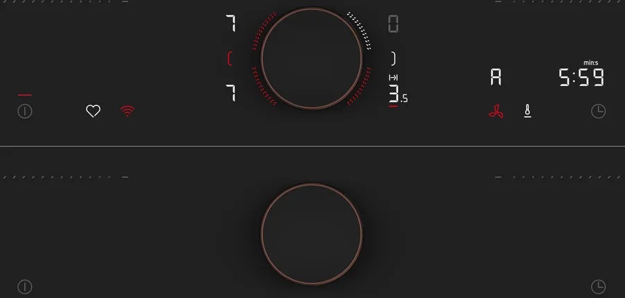 Operate your hob with haptic control! The magnetic, removable Twist Pad Flex® ensures precise and easy operation of your hob. Activate your desired cooking zone with a simple tilt, and then rotate the intuitive button to select your desired power level, and watch the surrounding lights indicate the heating status. And it does not stop there – the Twist Pad Flex® can also be used to operate your oven and coffee machine!