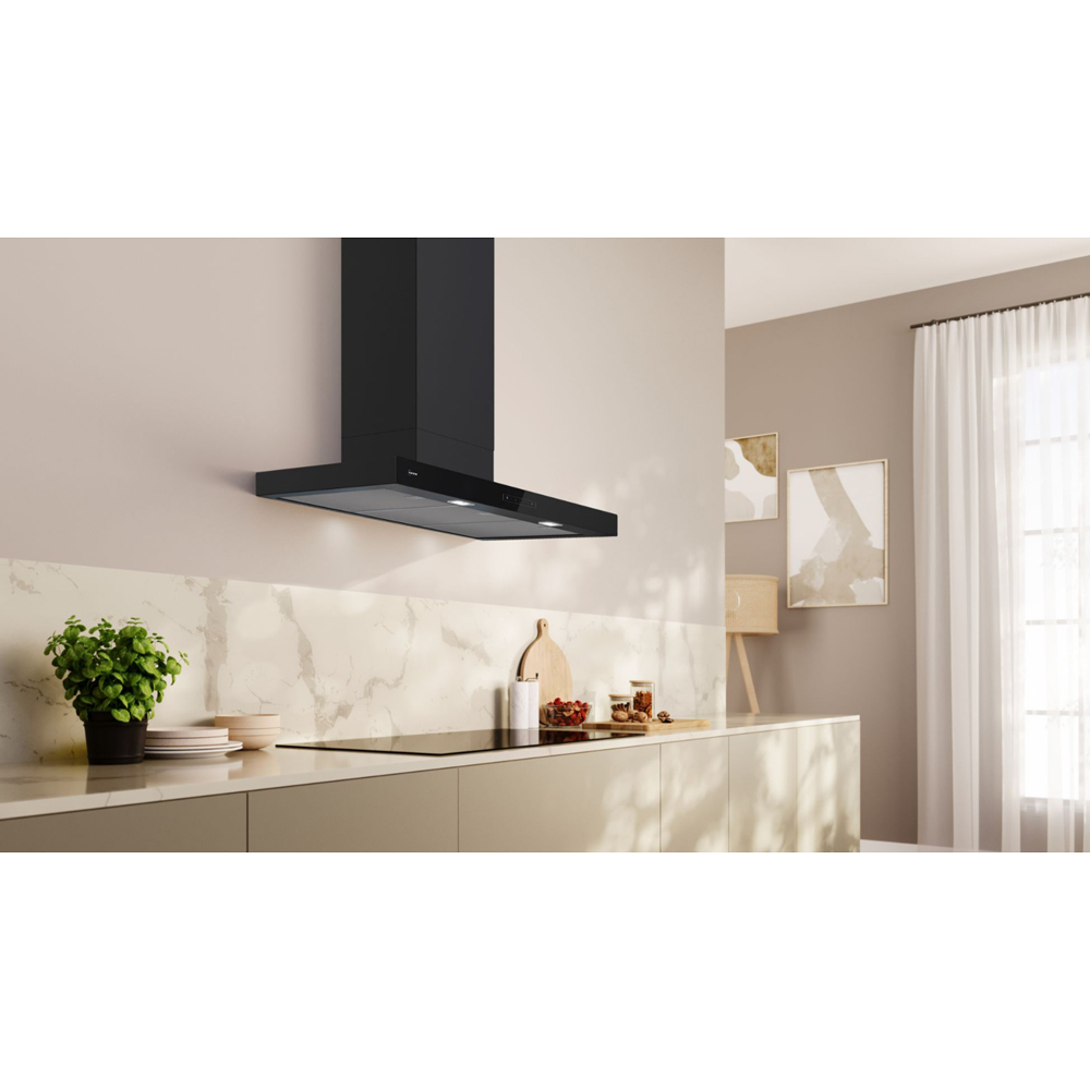 Wall-mounted extractor hood that provides clean air, combining silent operation and powerful performance.