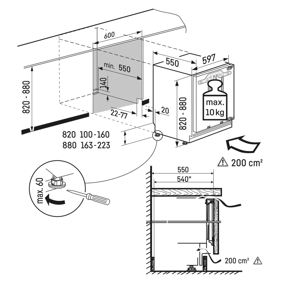| Model type | Under-worktop refrigerator for integrated use |