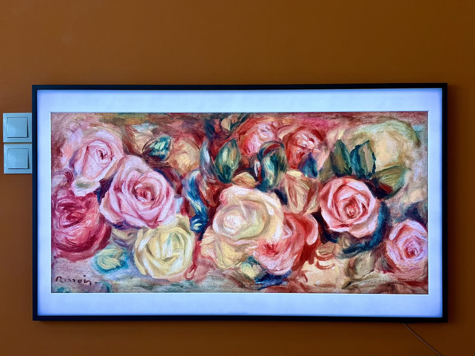 The Intelligent Motion Sensor will help you maximize energy savings. Now you can set The Frame to display your artwork when you're in the space or turn off when you're away.
