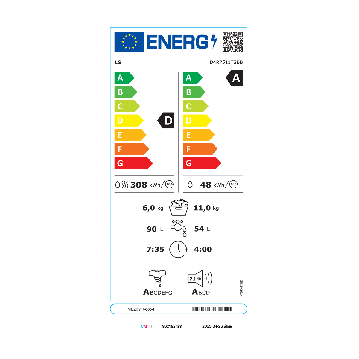 Lg washer-dryer, D energy class with a maximum washing capacity of 11 kg, drying capacity 6 kg and 1400 spin speed. Features ezDispense™ automatic dosing system, TurboWash™ 360 for quick washes in just 39' and Steam technology which eliminates allergies with the power of steam. In addition, features AI Inverter Direct Drive™ Motor which automatically selects the optimum drum movements for the fabrics and SmartThinQ™ application for for remote control via smartphone or tablet.