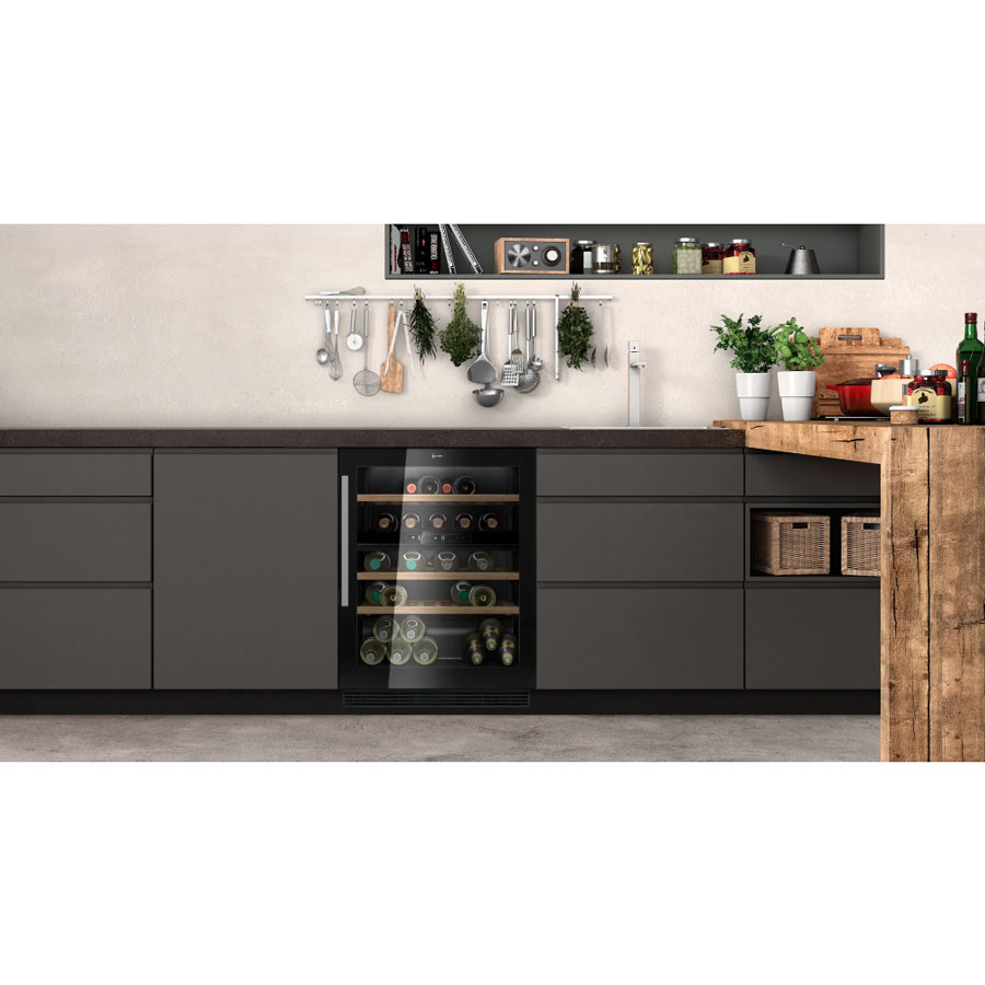 Neff KU9213HG0 Wine Cooler with a capacity of up to 44 bottles with flexible storage in 2 independently adjustable zones for ideal preservation of your favorite varieties! Features 5 shelves, 3 of them sliding in bamboo, LED lighting for even illumination without UV exposure and precision electronic temperature control between 5ºC-20ºC with digital display.